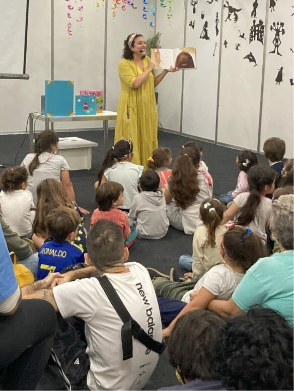 Narración en Feria del Libro, sobre diversidad corporal. Narré Tuntún, El chico del pelo largo y Nicolasa